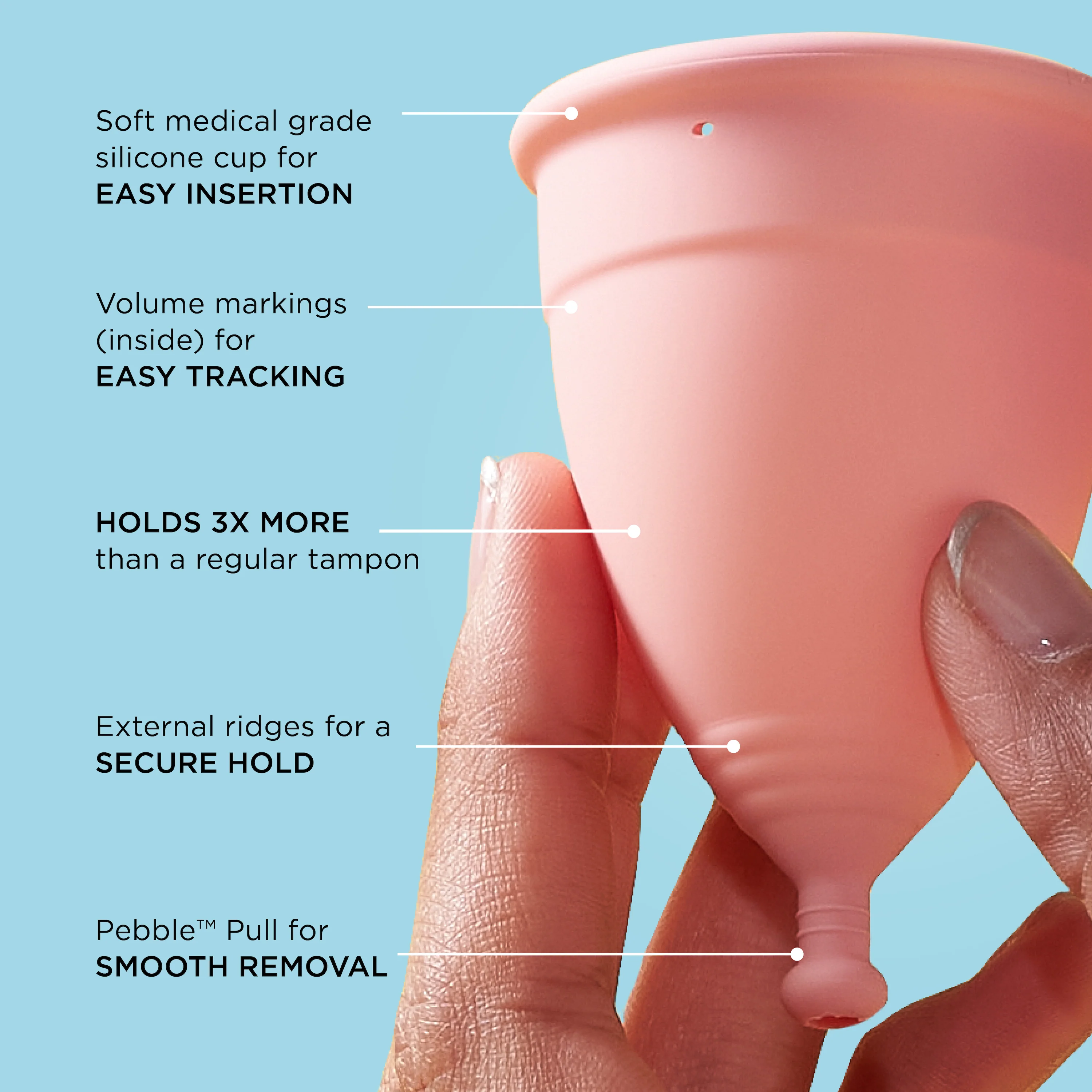 Holding up to 3x more fluid than regular tampons, the Mooncup Beginner can be worn for up to 8 hours. Perfect for use at home, travelling or on-the-go.