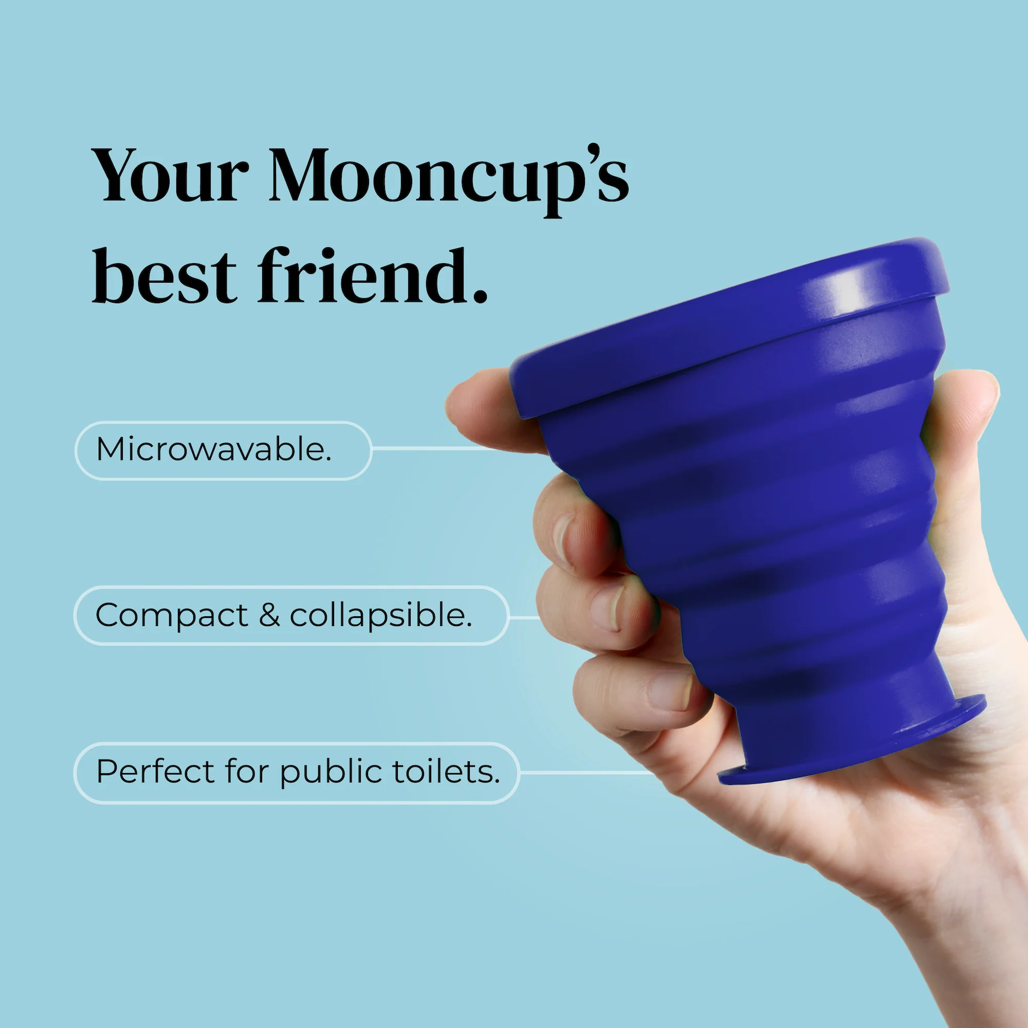 Designed to fit all Mooncup sizes, our collapsible cleaning pot is made from soft, medical grade silicone.